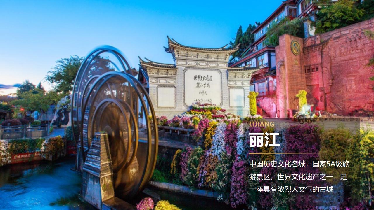晚餐后【赠送丽水金沙】以舞蹈诗画的形式,荟萃了丽江奇山异水孕育的独特的滇西北高原民族文化气象、亘古绝丽的古纳西王国的文化宝藏,择取丽江各民族最具代表性的文化意象,全方位地展现了丽江独特而博大的民族文化和民族精神。随后夜游国家历史文化名城、 世界文化遗产、全国文明风景旅游区-【丽江古城】是您自由散步的最佳地,也是游云南必到之地。