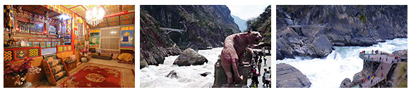 【藏族文化体验馆】,分别从自然风光、人文生活、历史渊源到宗教艺术,以不同视角展现多样的藏文化。中餐后前往【虎跳峡】从虎跳峡镇过冲江河,沿哈巴雪山山麓顺江而下,即可进入峡谷。【上虎跳】距虎跳峡镇9公里,是整个峡谷中最窄的一段,江心有一个13米高的大石-【虎跳石】,巨石犹如孤峰突起,屹然独尊,江流与巨石相互搏击,山轰谷鸣,气势非凡,被国家地理杂志社评为中国最美的十大峡谷。晚上抵达丽江晚餐自理,入住丽江。