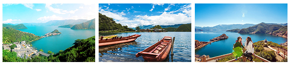 早餐后乘猪槽船登里务比岛(里务比岛是湖中五个全岛中面积最大,植被最好的一个。里务比岛上的寺庙属黄教喇嘛寺,始建于公元1634年。20世纪60年代初因众所周知的原因,作为封建迷信的产物被毁坏。1989年在罗桑益世活佛的倡导下,政府出资,群众投工投劳,由县旅游局具体负责实施重建,于1990年12月竣工。寺里供奉的佛像、法器都是当地信教群众自愿集资供奉的),中午乘车返回丽江,宁蒗县城用中餐,返回丽江,晚乘火车卧铺专列至昆明