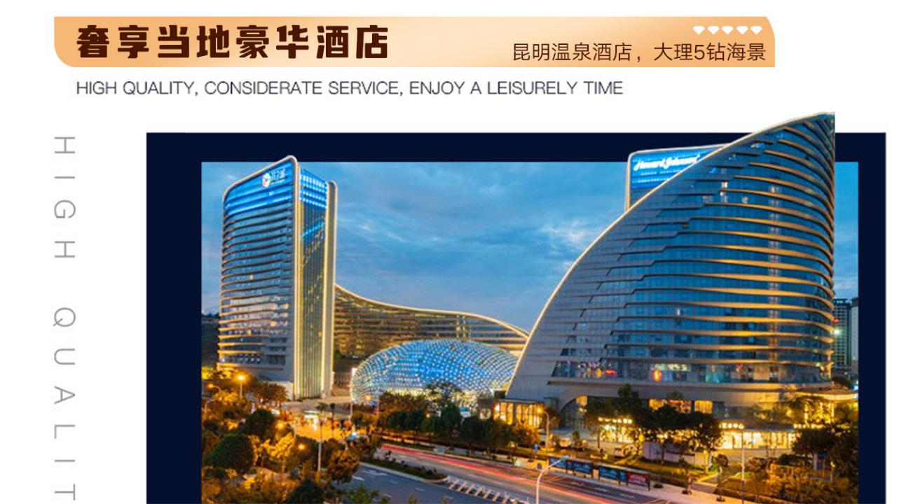 而后参观【大理古城】是国家AAAA级景区,是南诏古都,也是我们为您准备的云南必游标准景点。大理古城位于风光秀丽的苍山脚下,街巷间“三家一眼井,一户几盆花”。 后安排乘坐网红吉普车,摆拍靓照留下难忘的洱海足迹。前往【网红花海】是到大理不能错过的存在。美丽的大理就是花的世界,这里每一季节都有不同的鲜花绽放,红的,黄的,紫的,阳光下,在花海中奔跑,在蓝天白云下深呼吸,与朋友嬉戏,在花海留影,时间也变得越来越慢。【天空之境】【网红玻璃球、白色桌椅】这个被誉为一生必去的地方在花语牧场你就能体会到。看云卷云舒,在最接近天空的地方拍下照,属于您的【网红旅拍】一定会是您一生难忘的回忆。晚餐【白族风味餐】,不仅包容了饮食文化的精华,而且囊括了民族文化丰富的内涵,更是由衷地表达了纳西人对远道而来的客人的一片深情厚意。晚餐后入住酒店。