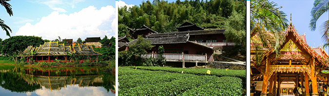 早餐后乘车出发,参观【自然民居】:走进原生态傣家村寨,路两旁的热带植物可谓是一道独特的靓丽风景,花果飘香,梵音缭绕,给人一种神秘、祥和的感受,在这里,您可以体验浓郁的傣家生活习俗,观赏典型的干栏式建筑、传统的手工艺制作。午餐后,乘车返回昆明,沿途欣赏热带雨林风景,穿越世界第一高架连孔大桥—红河大桥,到达昆明停车场,结束难忘的西双版纳傣乡风情之旅。