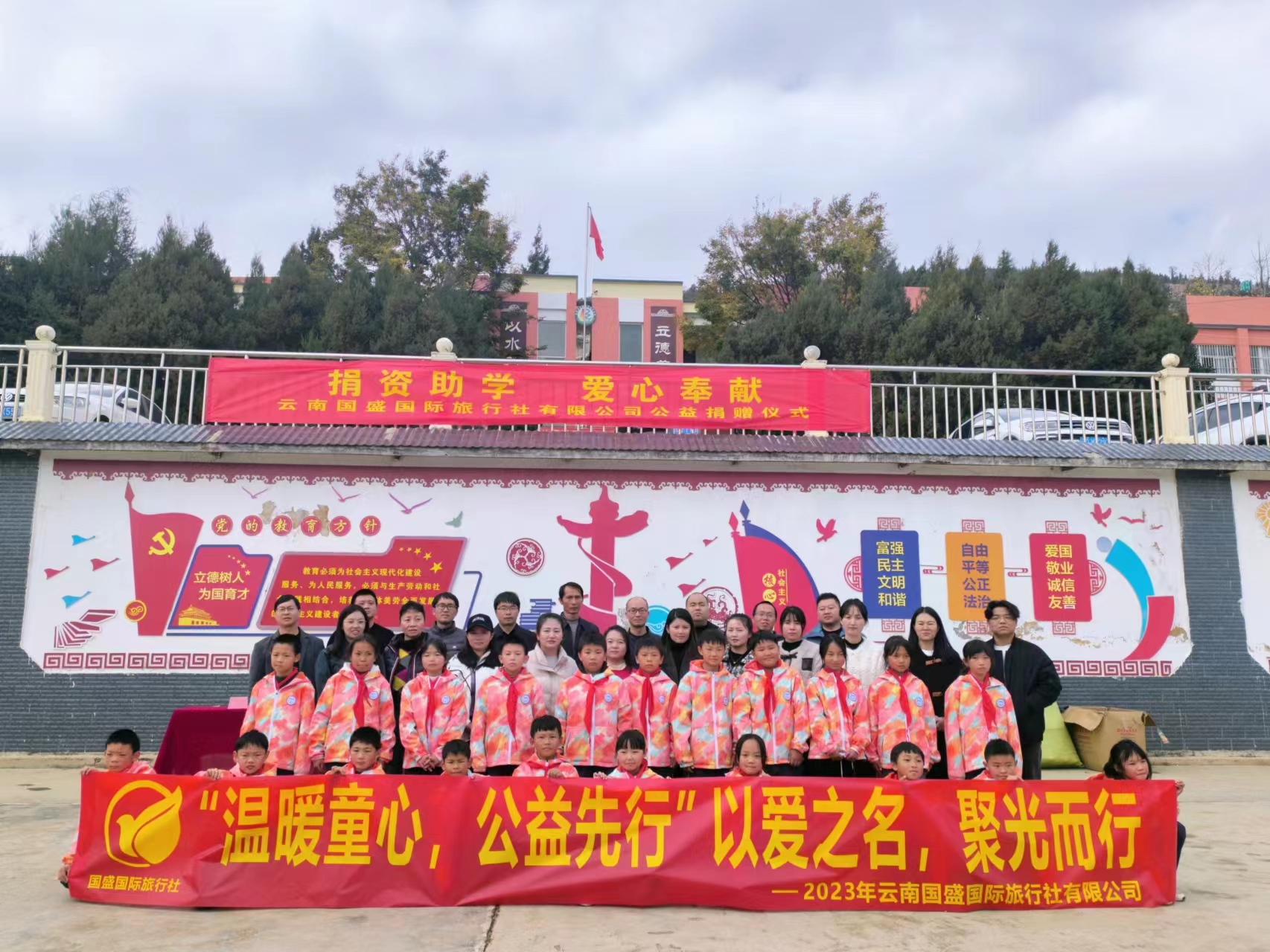 企业不仅是经济的推动者更是社会责任的践行者作为一家秉持社会责任理念的企业国盛国旅始终坚信教育是改变命运、塑造未来的关键千里公益,始于足下2023年9月14日国盛国际旅行社前往云南省大理白族自治州祥云县鹿鸣乡罗溪小学开展爱心助学活动以爱之名回馈社会帮助那些有梦想却经济困难的学生经过不懈的努力成功的将所有捐赠物资运送至罗溪小学抵达学校之后学生们热情地为我们工作人员提供矿泉水亲手将物...