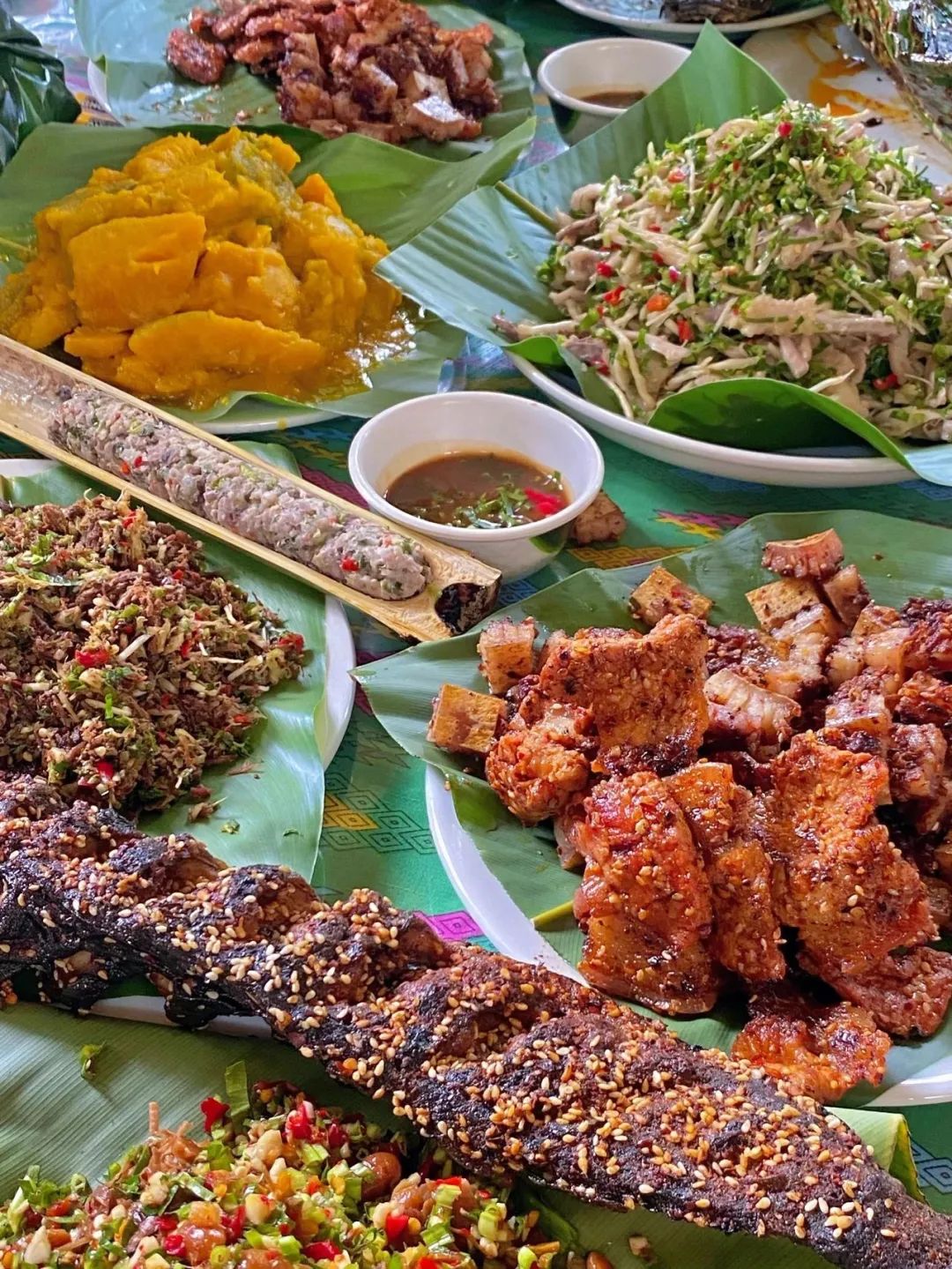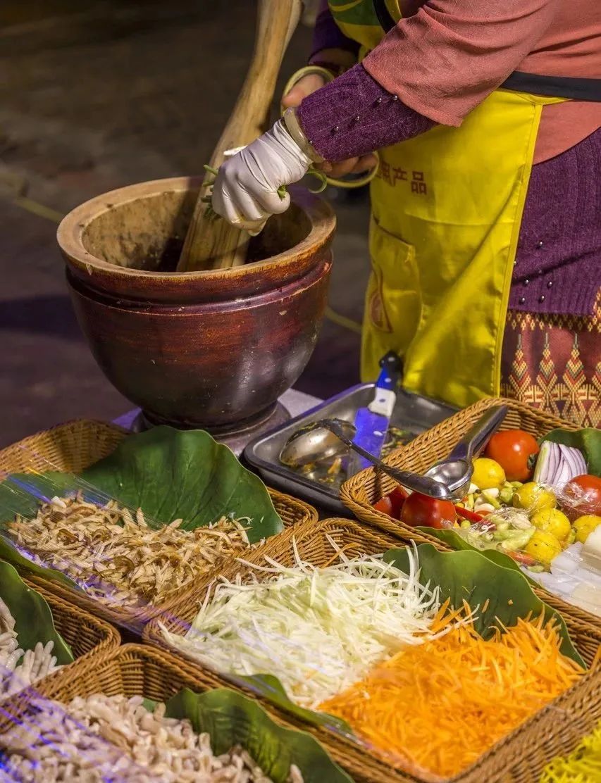 你能尝到舂鳝鱼、竹筒烤鱼、炸猪皮、鬼鸡、卷米线、凉拌牛肚、酸木瓜炒牛肉丝……